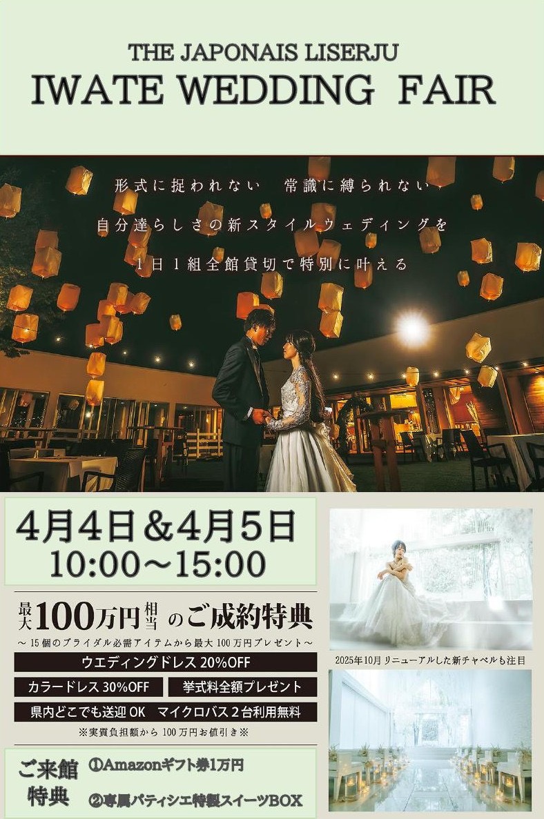 IWATE WEDDING FAIR 2026.4.4.SAT&5.SUN